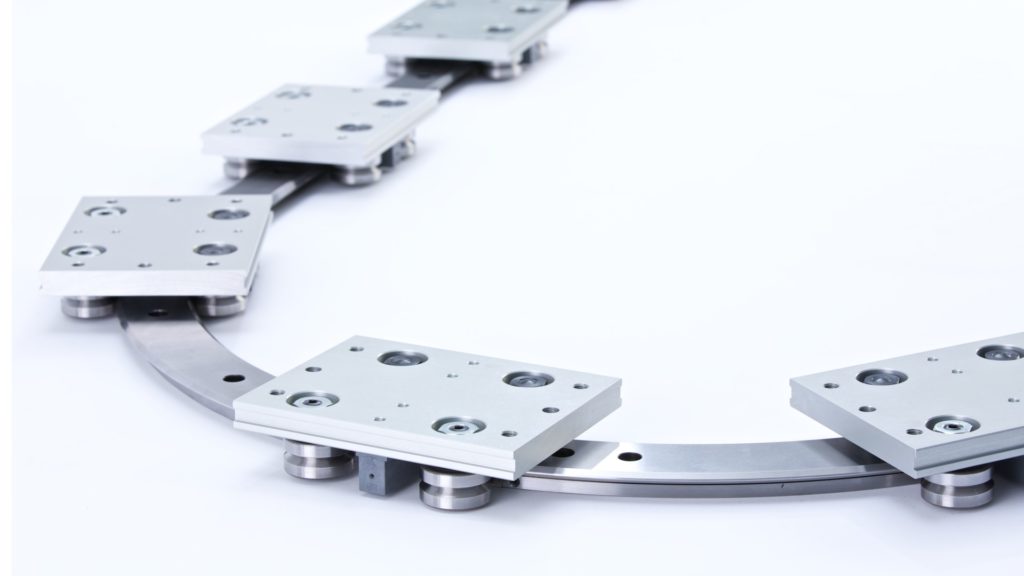 Das ideale Produkt für kombinierte Dreh- und Linearbewegung. HepcoMotions Schienensysteme sind in ovaler, rechteckiger oder S-Form mit mehreren Laufwagen erhältlich und machen unterschiedliche Montagevorgänge auf einem einzigen Schienensystem möglich. Alle Komponenten sind in korrosionsbeständiger Ausführung erhältlich und so bestens für den Einsatz in der Lebensmittel-, Forschungs- und Medizinindustrie geeignet. Führungssysteme von HepcoMotion sind eine kosteneffiziente Alternative zu Förderband-Systemen.